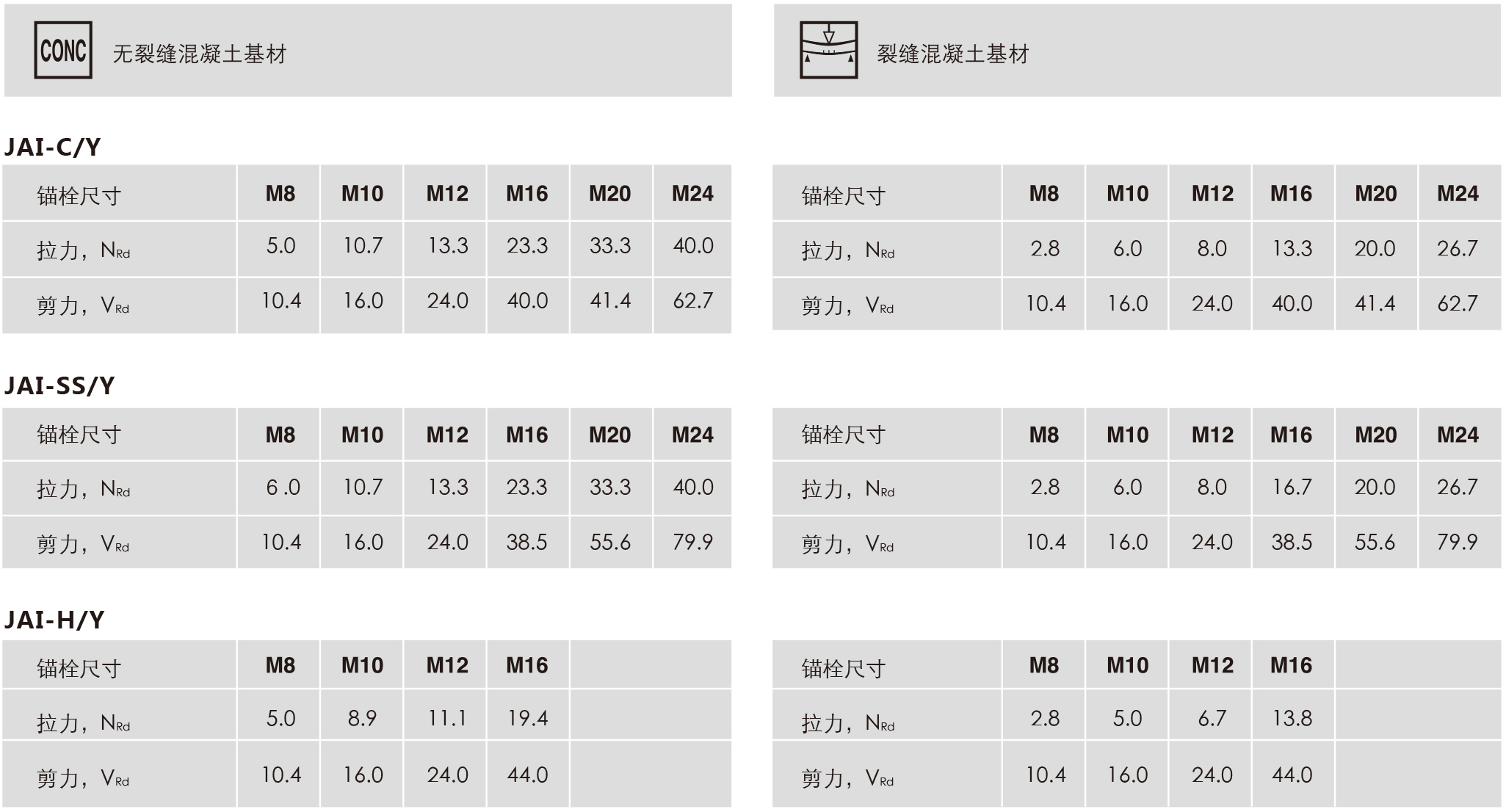JSW喬司微JAI-SS安全螺栓式錨栓設(shè)計參數(shù)